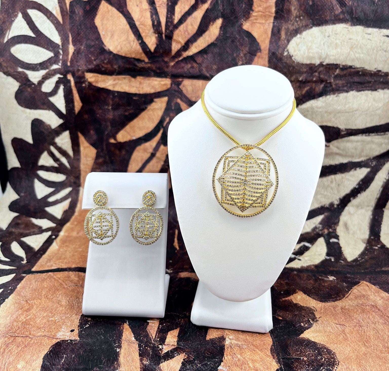 This beautiful necklace and earring set are made from high-quality brass, and plated with pure rhodium and original 24 carat gold and silver